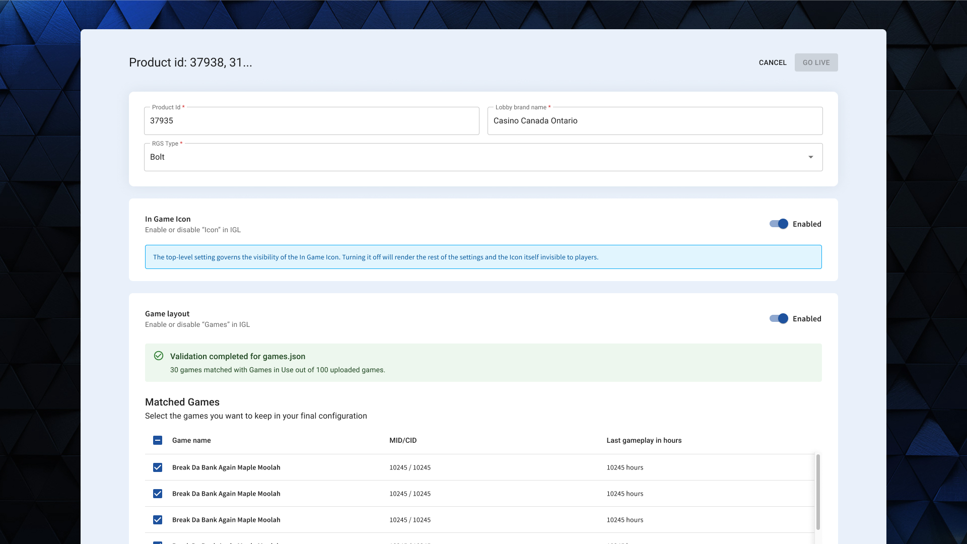 The Casino Back Office platform transformed casino operations by consolidating fragmented configuration tools into a unified system. Operators gained the ability to launch new markets faster, configure promotions independently, and manage complex game libraries efficiently. The intuitive interface reduced training time for new operators and significantly decreased configuration errors, resulting in faster time-to-market and improved operational reliability.